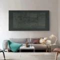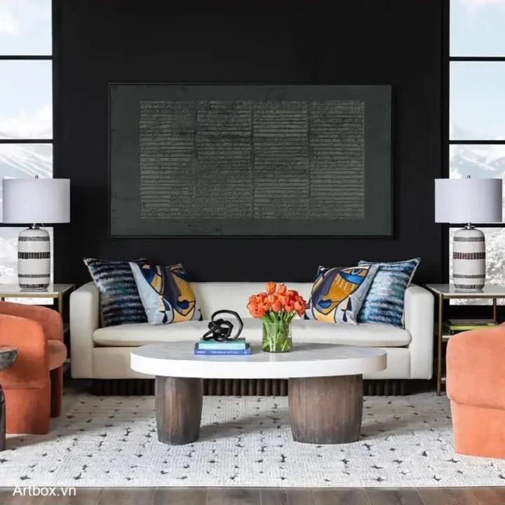 Bức tranh mang đến cảm giác huyền bí và sâu lắng với tông màu xám chủ đạo. Các đường nét và kết cấu nổi bật tạo nên chiều sâu, khiến người xem như lạc vào một không gian trừu tượng đầy cảm xúc. Các họa tiết được sắp xếp một cách tinh tế, tạo ra sự hài hòa giữa sự đơn giản và phức tạp. Màu sắc trầm ấm cùng với kỹ thuật texture nổi giúp bức tranh trở nên sống động và thu hút, thích hợp cho không gian hiện đại, nơi mà nghệ thuật và sự tối giản giao thoa.