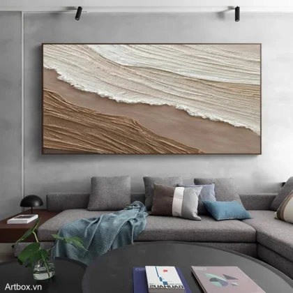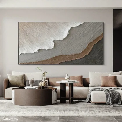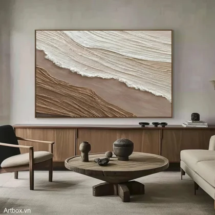 Giai Điệu Của Đất Trời – Tranh Sơn Acrylic Trừu Tượng Trừu tượng Nâu be Trang Trí Phòng khách – Phong Cách Hiện Đại