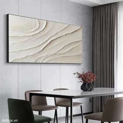 Dòng Chảy Tĩnh Lặng – Tranh Sơn Acrylic Trừu Tượng Trừu tượng Nâu be Trang Trí Phòng ăn, Phòng khách – Phong Cách Hiện Đại