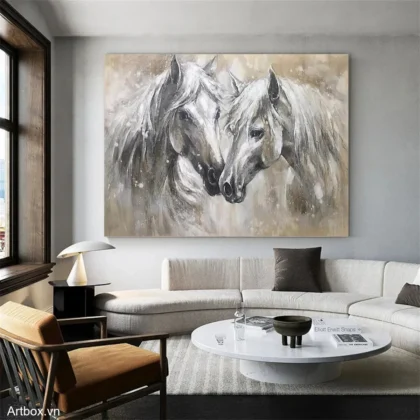 Giai Điệu Của Những Chú Ngựa – Tranh Sơn Acrylic Trừu Tượng Động vật Đen trắng Trang Trí Phòng khách, Phòng ngủ – Phong Cách Hiện Đại