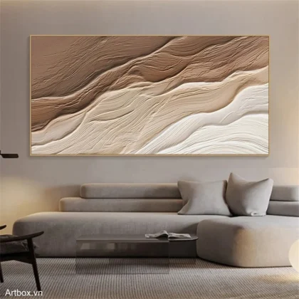 Dòng Chảy Tự Nhiên – Tranh Sơn Acrylic Trừu Tượng Trừu tượng Nâu be Trang Trí Phòng khách, Phòng ngủ – Phong Cách Hiện Đại